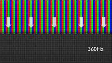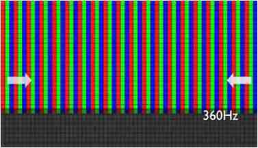 传统液晶驱动是从左到右单向进行,,,在画面更新速度愈来越愈快的情况下,,位于驱动线路末端的右下角区域,,,,画素的闸极来不及在短时间内获得足够电压,,,,无法显示出正确的颜色资讯。。 |